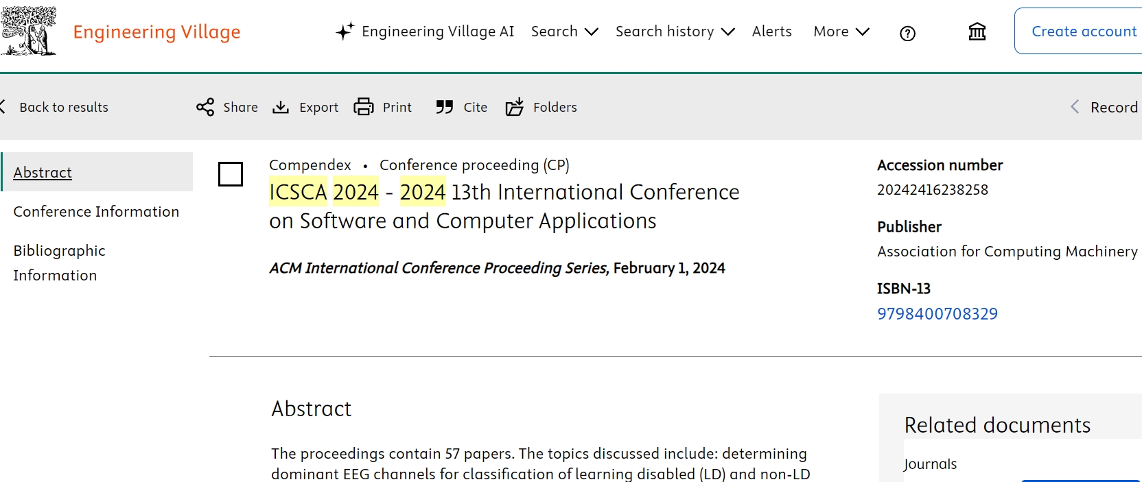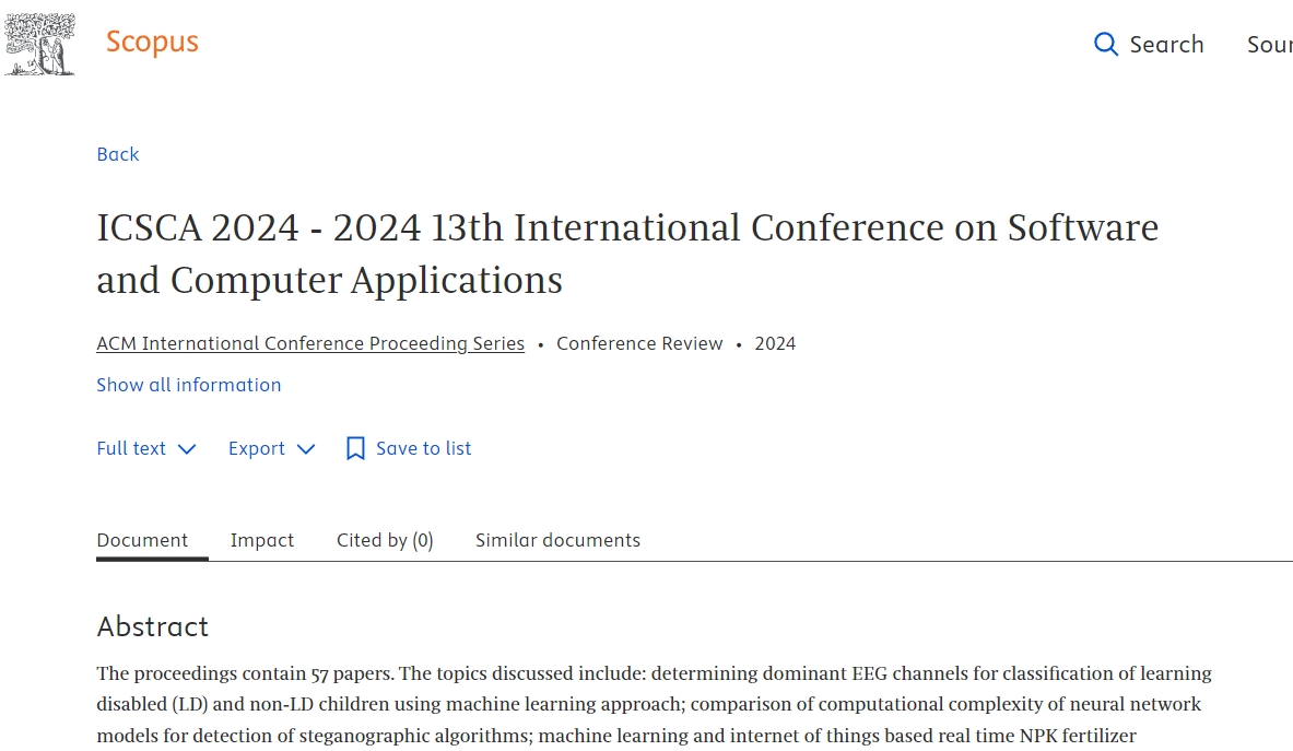 | ICSCA 2024 | ISBN: 979-8-4007-0832-9 | ACM Digital Library | Scopus & Ei-Compendex Index | ||